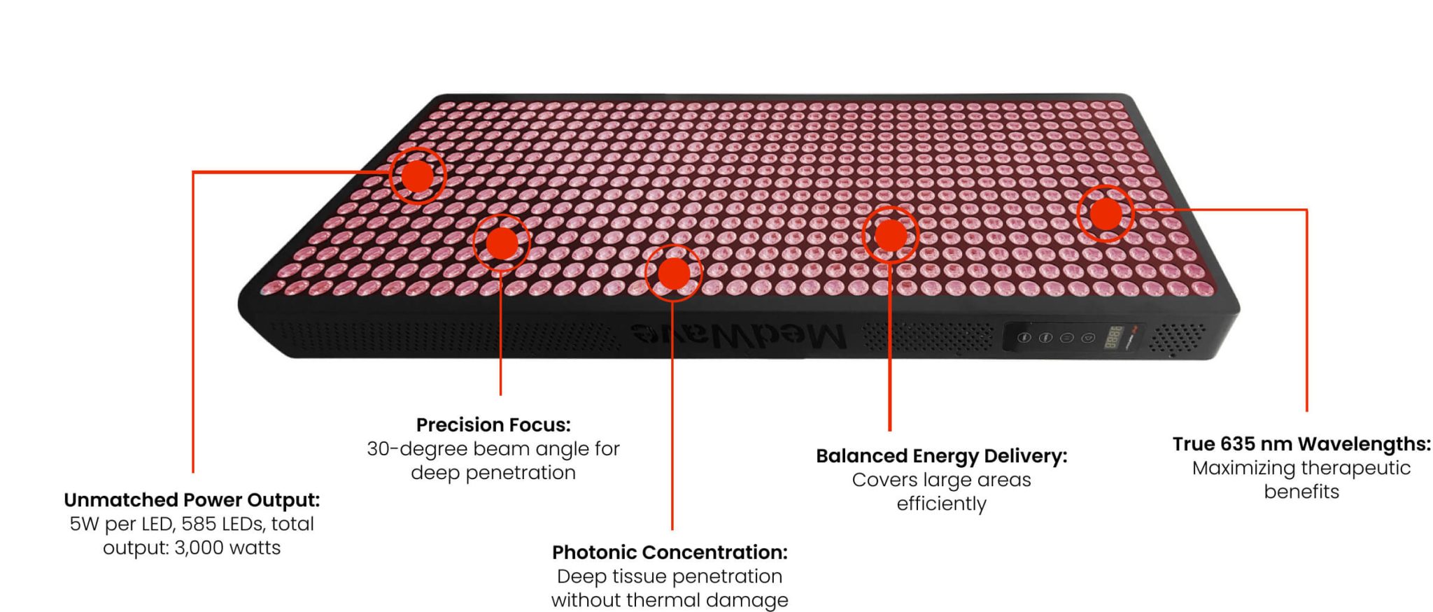 | 585 LED focal lens design | Narrow Light™ Technology for deeper penetration |